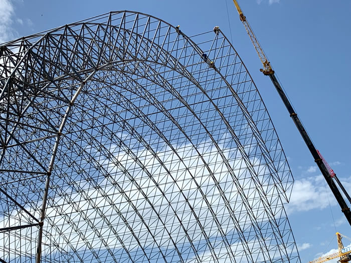 (2)网架加工前应对现场尺寸进行复测,确认无误后方可进行加工、安装;网架制作、运输、安装应遵守《空间网格结构技术规程》JGJ7-2010、《钢网架南岸螺栓球节点》JG/T 10-2009、《钢网架南岸螺栓球节点用高强度螺栓》 GB/T 16939-2016、《南岸钢结构南岸工程南岸施工规范》 GB50755-2012、《南岸钢结构南岸工程南岸施工质量验收标准》 GB50205-2020。